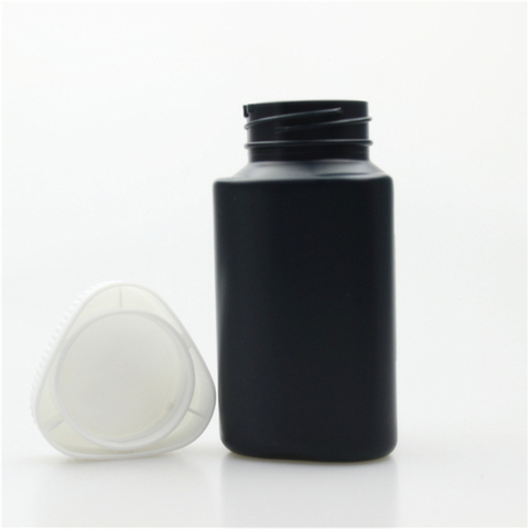 La píldora y de plástico de HDPE de maca de la botella de la cápsula 150cc 150ml 5oz triángulo blanco negro de aceite de pescado de la farmacia botella de botella